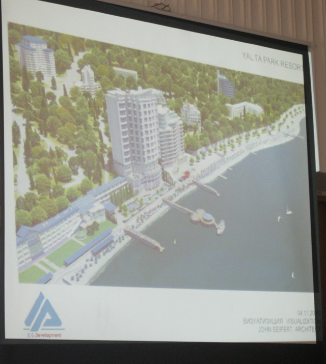 Проект членам исполкома представлял известный архитектор Джон Сиферт, который проектировал, в частности, отель «Хилтон» в Киеве. Он заверил, что присутствие такого крупного сетевика в Ялте не только привлечет туристов, но и поспособствует расширению рамок курортного сезона за счет конференц-туризма. Кроме того, отметил Дж. Сиферт, проект «Ялта Парк» предоставит до 500 новых рабочих мест.