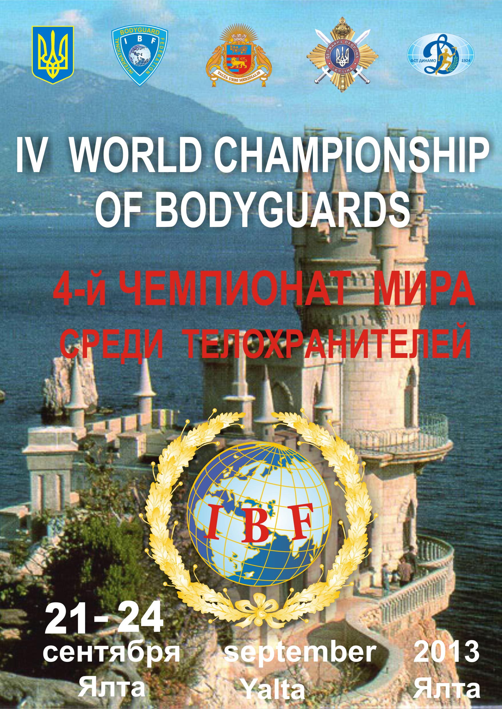 Bodigard_2013С 21 по 24 сентября  в Ялте состоится Чемпионат мира по многоборью телохранителей «Бодигард – 2013». В соревнованиях примут участие профессиональные телохранители из 14 стран – из Украины, Армении, Беларуси, Болгарии, Грузии, Израиля, Казахстана, Киргизии, Молдовы, Объединенных Арабских Эмиратов, России, Румынии, США, Турции.