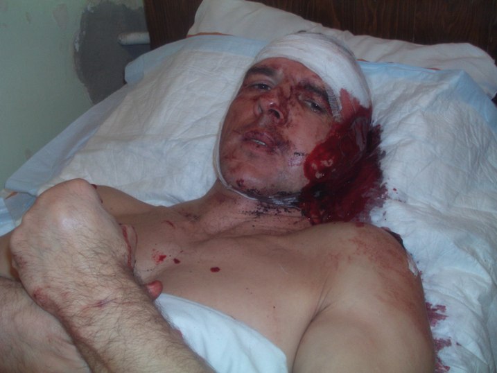 «В первой половине дня я приехал к себе домой. Когда двери лифта на 9 этаже, где я живу, открылись, на меня набросился Гоптарев Артем Романович, действующий сотрудник Алуштинского городского отдела милиции, – говорит пострадавший. – Он начал наносить мне удары ножом. После первых же ударов я его схватил, и мы вместе с ним выскочили из лифта на лестничную площадку. Он продолжал наносить удары ножом. Я, как мог, блокировал их, руку с ножом задерживал».