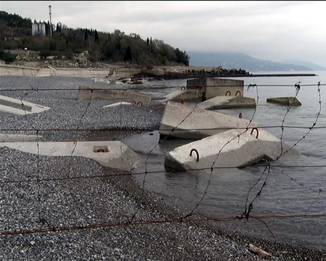 Как выяснил “Центр” в ходе журналистского расследования о доступности крымских пляжей, у бывшего санатория «Золотой пляж» – две карты пляжа протяженностью берега 116 метров, который имеет оздоровительное назначение, а соответственно, закрыт для общего пользования. Однако пляж за проволокой завален бетонными плитами, самого санатория нет, на его месте – расчищенная площадка, видимо, под будущее строительство.