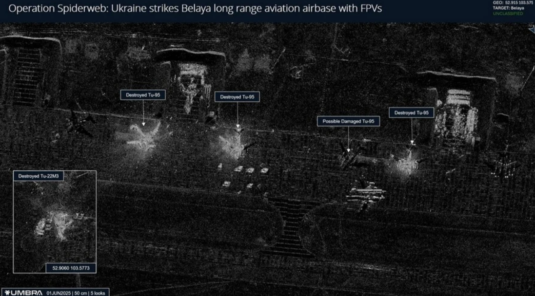 Судя по снимкам, во время операции были предположительно уничтожены четыре бомбардировщика Ту-22М3 и три Ту-95МС. Кроме того, один Ту-95МС, вероятно, был поврежден.