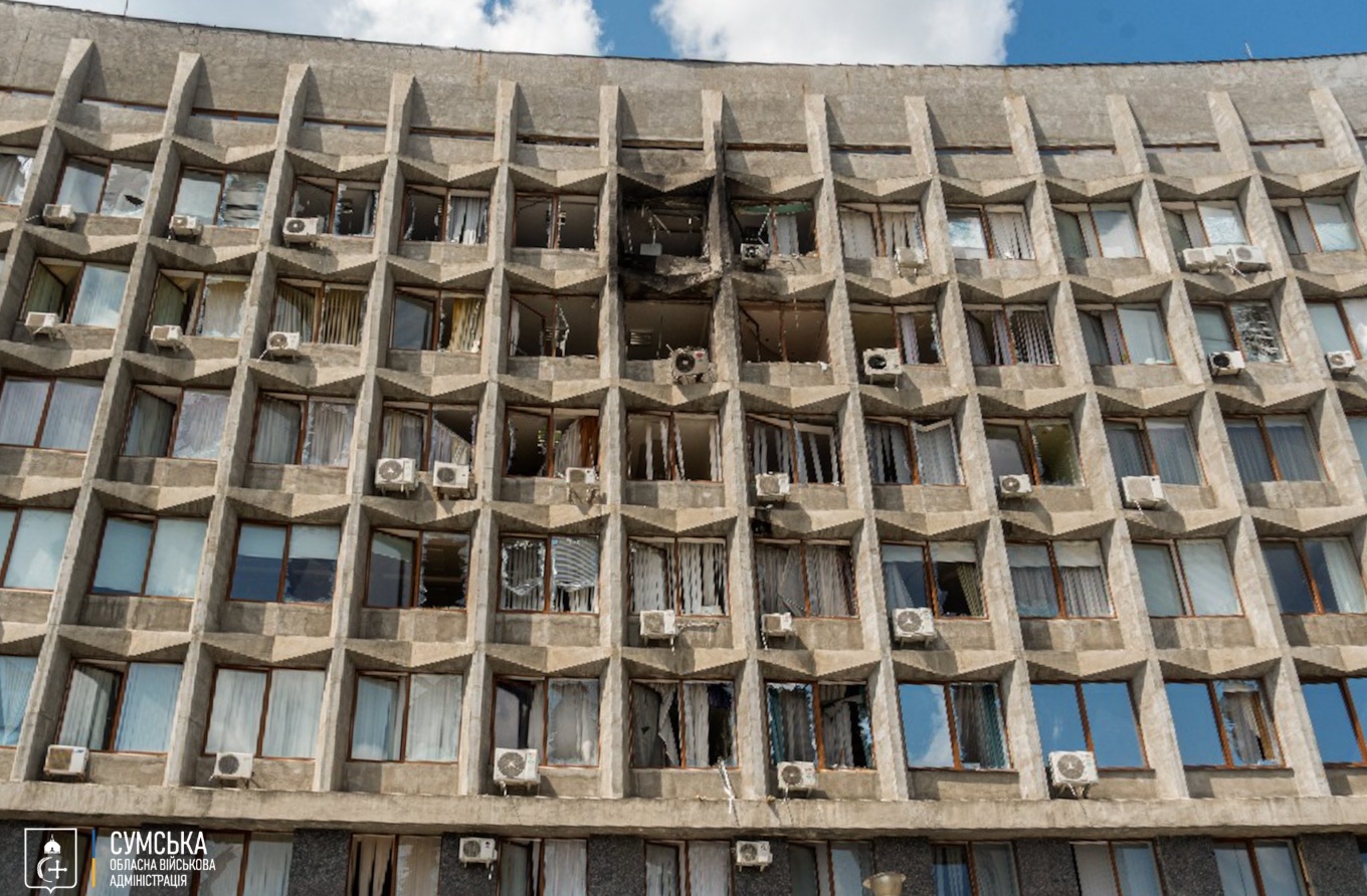 В Сумах российский ударный дрон попал в здание Сумской ОВА (видео)