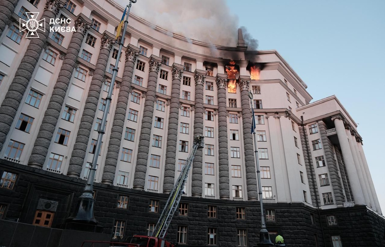 Як повідомляє Суспільне з посиланням на джерела, горить саме будівля Кабінету міністрів України.