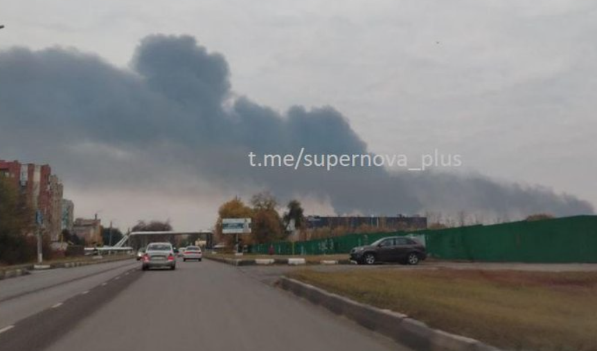 Як зазначається, після атаки на НПЗ фіксується потужна пожежа.