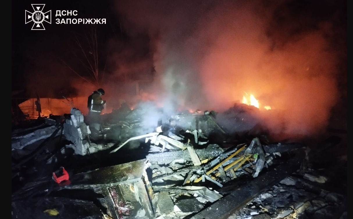 Як інформують рятувальники, у ніч на 29 січня внаслідок ворожих ударів у Запорізькому районі пошкоджено 7 приватних житлових будинків, один будинок повністю знищено. Рятувальники ліквідували пожежу в приватному житловому будинку на площі 100 кв. м, а також загоряння газової труби низького тиску.