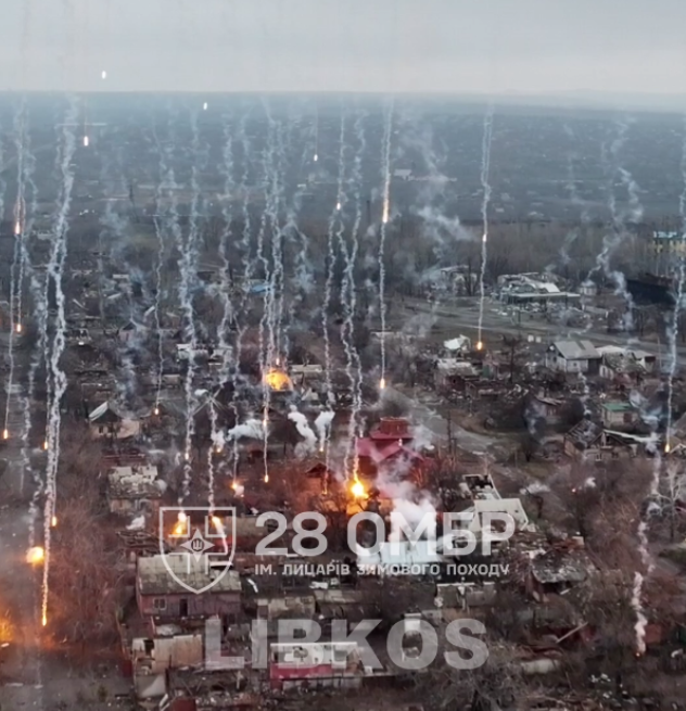 Пілоти підрозділу R.V. 3-го батальйону 28-ї механізованої бригади імені Лицарів Зимового Походу зафіксували російські удари фосфорними бомбами по житловому кварталу Костянтинівки в Донецькій області.