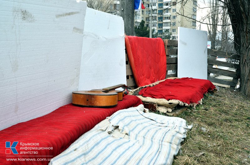 В Симферополе место дислокации подразделения милиции специального назначения «Беркут» круглосуточно охраняют отряды народной самообороны, готовые «в случае опасности» занять оборону.