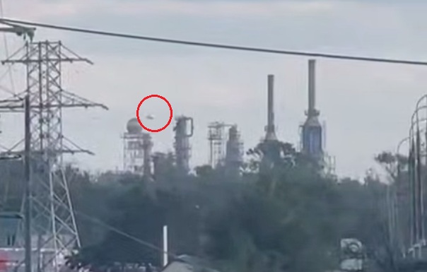 На видео, обнародованных в Telegram-каналах, видно, что, по меньшей мере, один из БпЛА успешно атаковал и вывел из строя установку первичной переработки нефти.