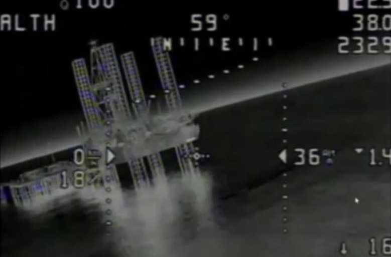 ВМСУ также опубликовали видео атаки на СПБУ, на котором видно как морской дрон поражает одну из четырех опор «Сиваша», а ударный БпЛА поражает надстройку установки.
